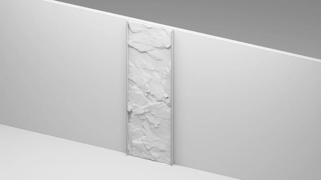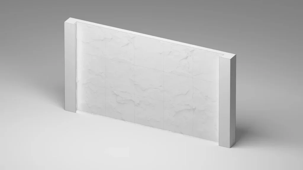 Standardowy wymiar panelu to 1000 × 1000 mm. Grubość w najwyższym punkcie nie przekracza 100 mm. 15 niezależnych bloków skalnych tworzy spójny, wielowymiarowy wzór.
